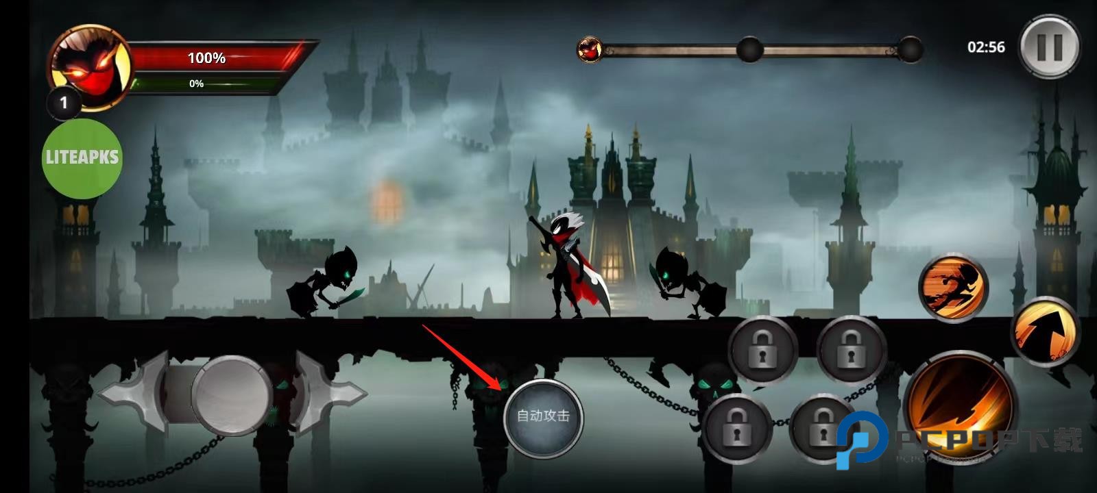 8、然后就可以畅玩游戏,当然也可以点击下方的【自动攻击】,就可以解放我们的双手;