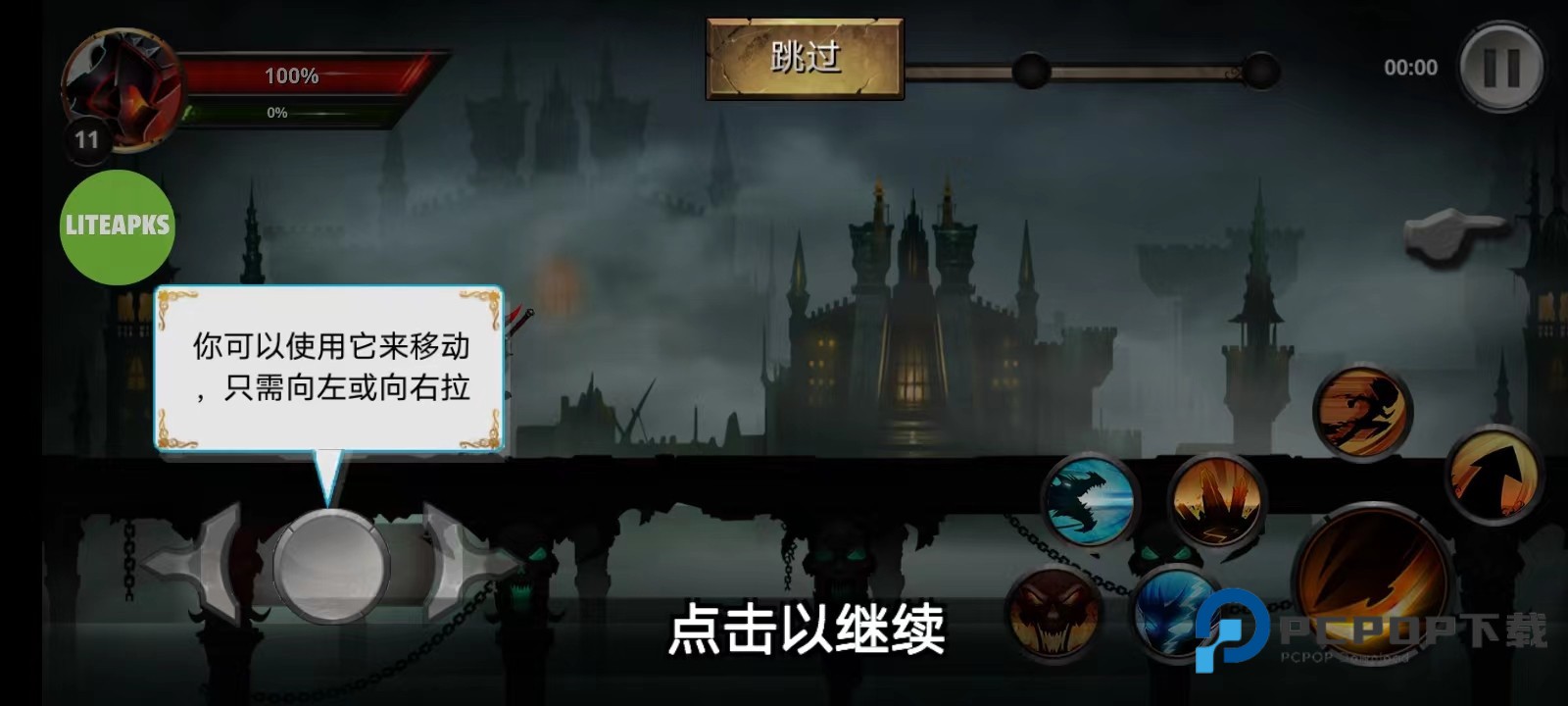 2、进入游戏之前,会有一段教程,根据教程,玩家可以对游戏有初步的了解;左侧移动,右侧技能、跳跃可谓是中规中矩,在这里玩家将凭借你犀利的操作和走位尽可能的躲避敌人的攻击,并战胜击杀所以的敌人;