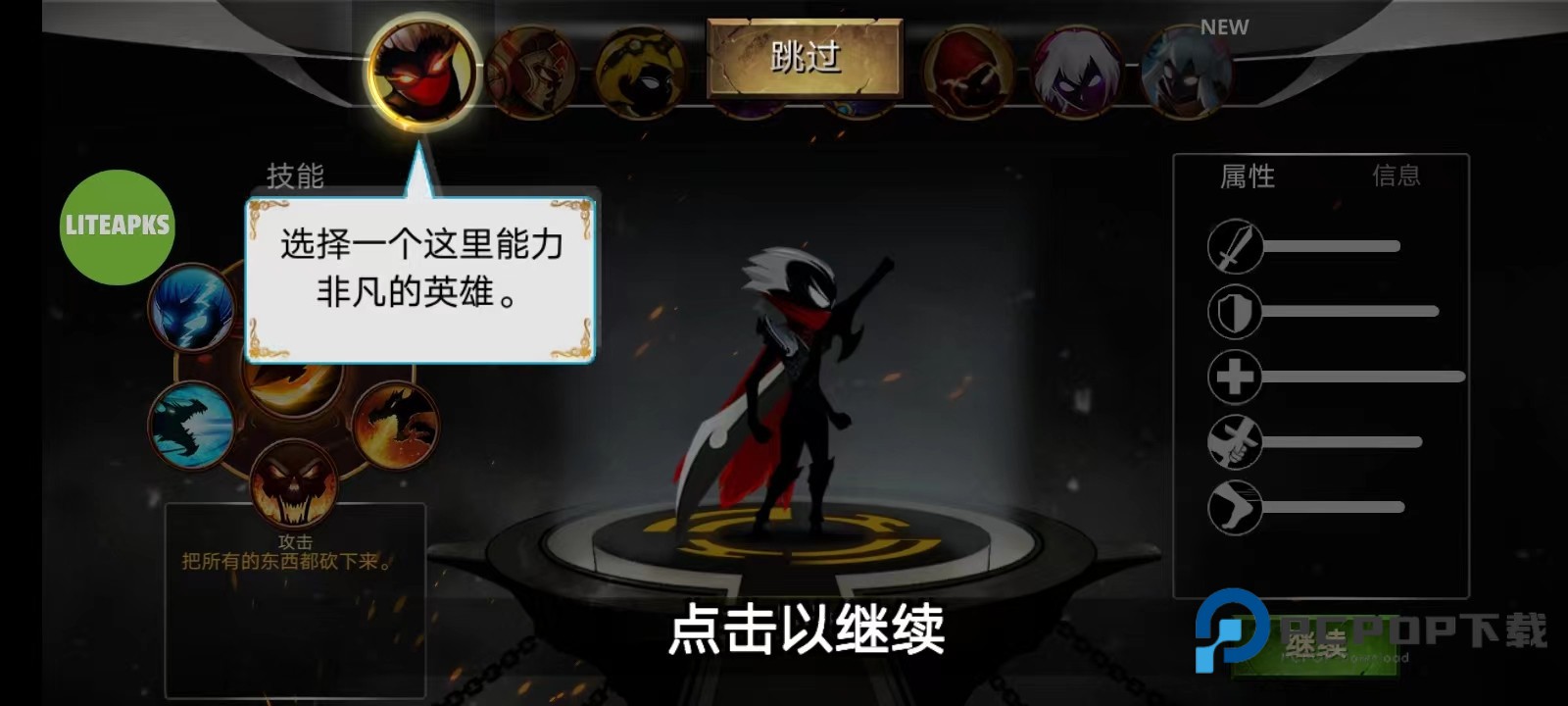 5、试玩结束以后,玩家可以在上方选择一个英雄开始战斗;选好之后,点击右下角的【继续】;