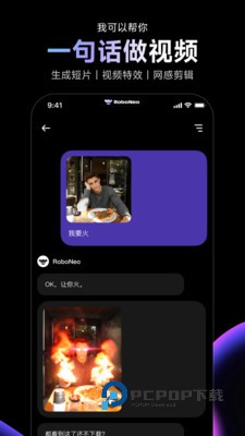 AI视频制作功能:依据用户需求,例如“我要火”,生成短片、添加特效等。
