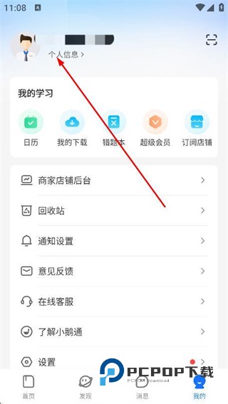 2、在我的页面中,找到并点击头像下方的个人信息选项。