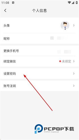 3、进入个人信息页面后,找到并点击设置密码选项。