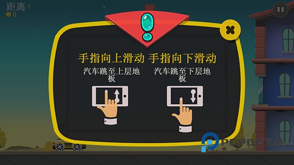 1、第一阶段手指向上/下滑动,即可操控汽车跳至上/下层地板,以避免前方出现的障碍。