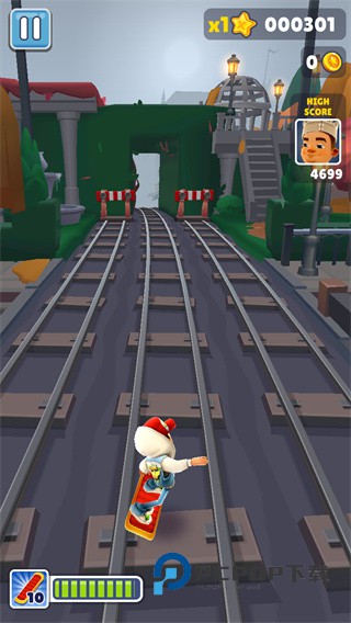 4、道具合理利用。玩家们在游戏中不仅要收集金币,扑面而来的火车也会让你累够呛,在这个过程中你可以使用道具,加速道具能够让你快速前进,使用滑板可以帮助你多出一条生命,点击屏幕两次可以使用道具。
