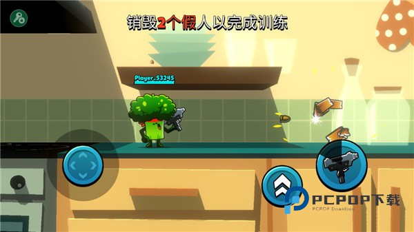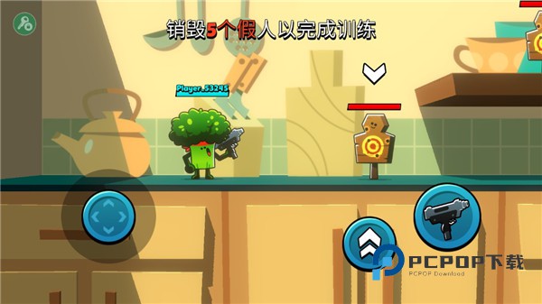 1、进入游戏之后可以看到我们这里有移动方向和跳跃射击。