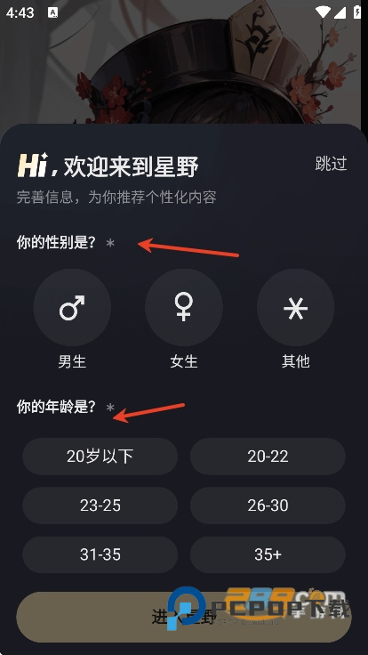 打开app,用户们可以先设置自己的性别和年龄,方便软件进行个性化推荐