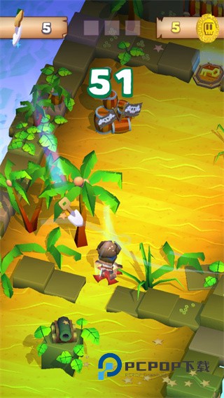 该游戏的操作是采用了点触控式设置,清点游戏屏幕即可让海盗王前进,而左右滑动即可变换行动方向,但不能后退,否则你将粉身碎骨,并且只要你点击的屏幕够快,那么海盗王的移动速度也是变快,这对于游戏中的各大陷阱通过是之至关重要的。