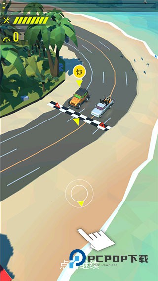 1、下载进入游戏,你需要通过圆盘来控制赛车的移动方向;