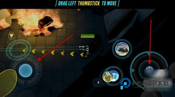 4、游戏开始时,左侧虚拟摇杆控制角色移动,右侧摇杆用于瞄准与射击操作。