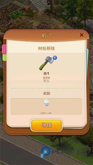 2、这个时候我们是需要斧头来移除树桩,点击寻找。