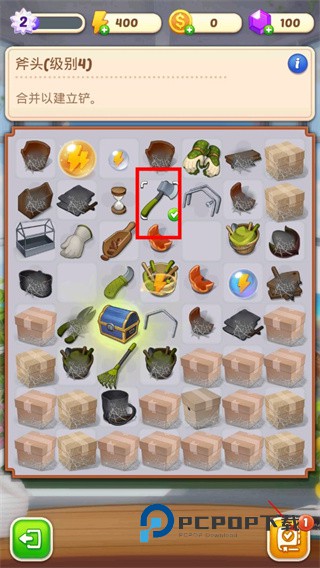 5、斧头合成出来之后点击它,在点击左下角开始使用。