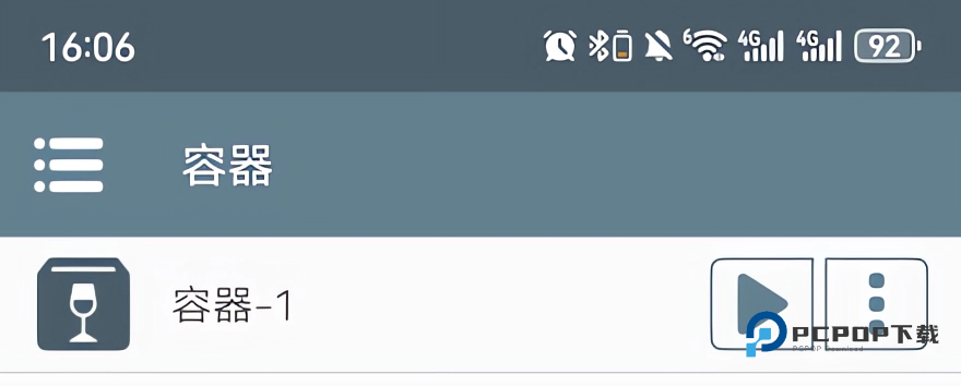 1、安装容器点击播放选项;