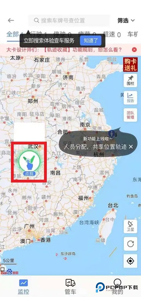 3、多车管理:支持同时绑定多台车辆,通过地图图标直观展示各车辆运行状态,点击图标即可查看车辆详细位置及各项运行数据,管理更高效。