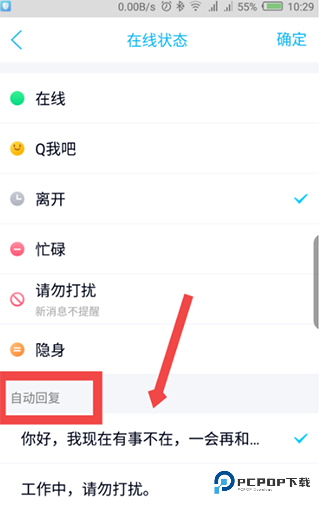 6、选择离开状态后,能看到下面可以设置自动回复。