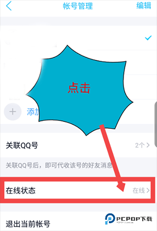 4、在打开的账号管理界面,能看到在线状态设置,点击打开。