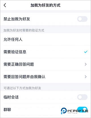 4、验证说明:若对方加好友设置为“允许任何人”或“需要验证消息”,会发送验证请求;其他设置则默认不发送。