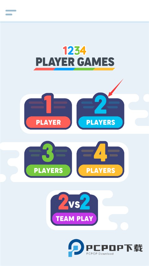 1、下载安装四人游戏对战打开进入界面,首先我们确认是几个人玩,如果是两个人选择2个人模式玩法;
