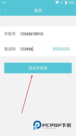 4、确认手机号和验证码填写准确后,点击验证并登录按钮,完成软件的登录操作。