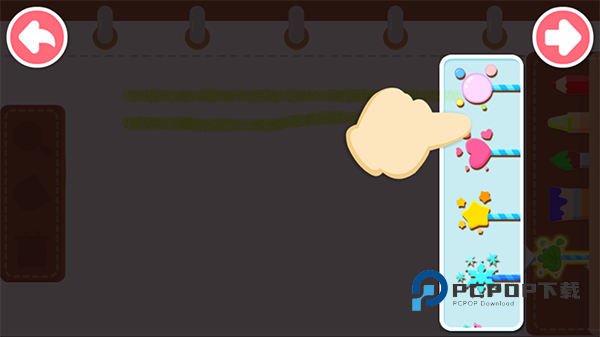 丰富的画笔工具:铅笔、蜡笔、毛笔、刷子……宝宝喜欢用哪种工具画画?快来选选!还可以交替使用多种画笔,绘制心中的理想画作。