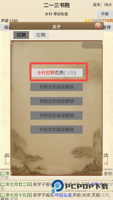 2、然后要进行招聘,在夫子招聘出,花费银子招聘夫子。