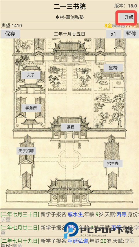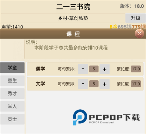 3、夫子招聘完毕,需要为学子们安排课程,童生阶段可安排10堂客。