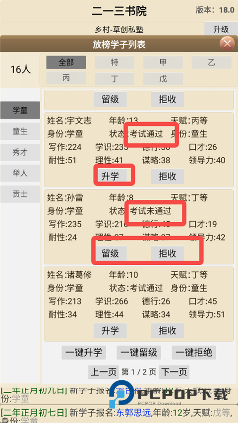 8、来到皇榜中,对于考试通过的学习可以进行升学,而对于为通过考试的学子可以留级也可以据收。