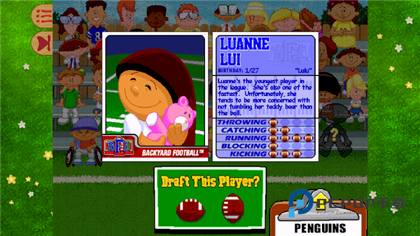 后院橄榄球1999手机版是一款美式画风的橄榄球体育模拟游戏,玩家将在此组建自己的球队,体验橄榄球的快乐。游戏拥有单人模式和赛季模式,玩家在单人模式中可以自由设计队徽和组建球队,并选择比赛的场地以及天气状况,而在赛季模式中,玩家可以从30位《后院运动》中的经典角色以及传奇职业球员中挑选队员,与其他15支球队展开角逐。此外,后院橄榄球1999手游内玩家若是在比赛中完成进攻传球、成功擒杀四分卫等表现还能解锁各种道具,如进攻时的变戏法可让接球手瞬间转移,音爆则可以引发地震震倒对方球员。
