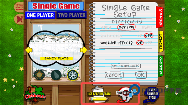1、进入后院橄榄球1999手机版,游戏中有两个模式,单人模式(Single Game)和赛季模式(Season Play)。