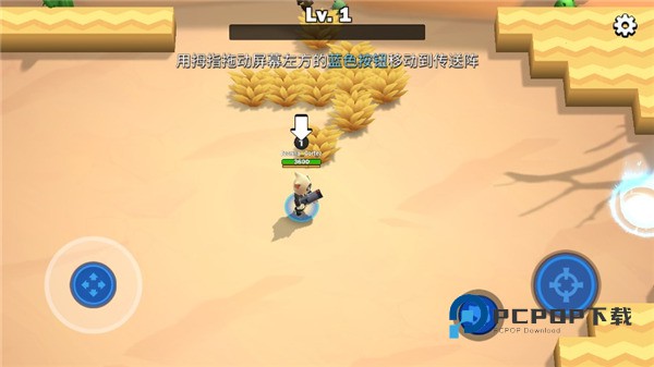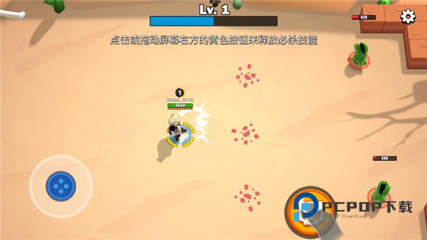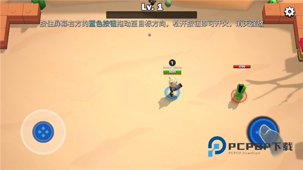 5、按住屏都右方的蓝色按钮拖动连目标方向,检开按钮即可开火,消灭强敌;
