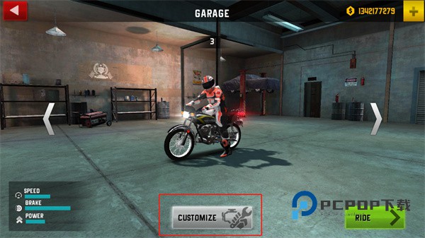 1、双击打开极限摩托车手机版游戏,点击CUSTOMIZE;