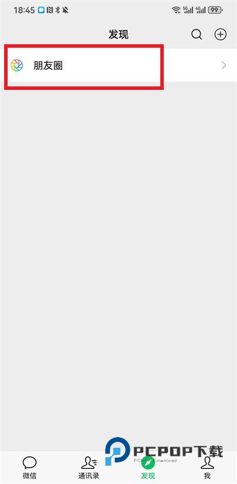 2、在发现页面点击进入到【朋友圈】,这样才能去进行下一步的操作;