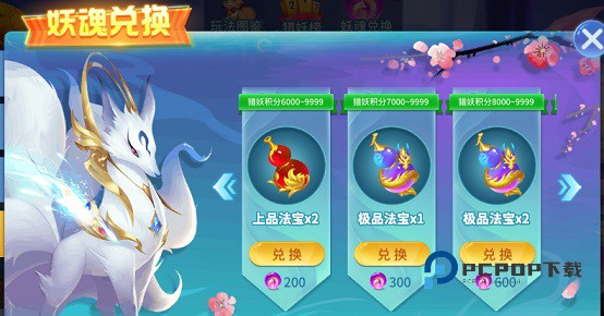 并且不差钱的青丘国还备有各种等级的法宝,船长可以通过妖魄进行兑换。兑换法宝,可以随机获得猎妖积分,参与猎妖排行榜。榜上有名的船长,可以获得对应的榜单的奖励哦。