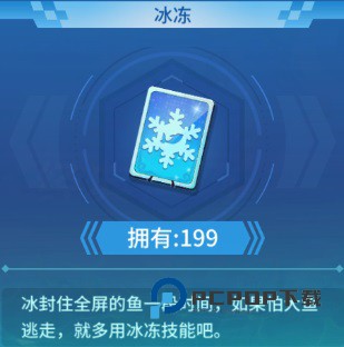 冰冻:顾名思义,冰冻的作用就是把渔场中现有的鱼冰冻一段时间,防止在还没有击落鱼时,鱼就跑了。使用冰冻道具,不会影响渔场后面进入的鱼,只会冻住渔场中现有的鱼类。所以也不用担心冻住的鱼打完了还没有鱼类进来的情况哦。