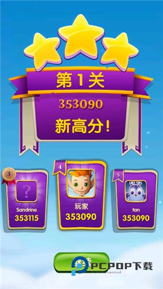 5、关卡结束之后,即可获得你的分数排名。