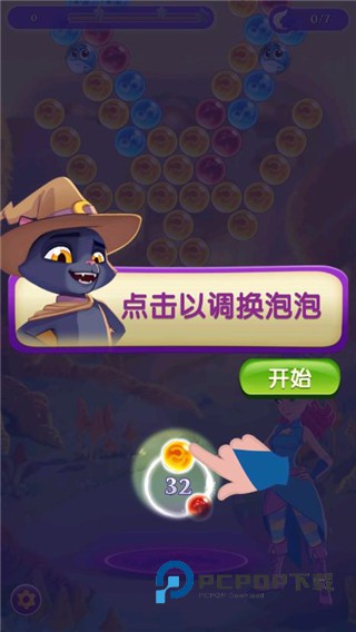 1、在这个神奇的益智射击冒险游戏中,匹配3个气泡使它们弹出。