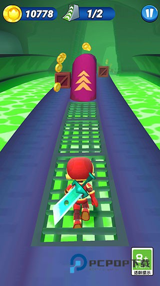 2、使用丰富多样的强化道具:火箭、弹跳靴、磁铁和双倍金币都能在过程中助你一臂之力。跑向这些物品即可收集,此外还能获得额外分数!