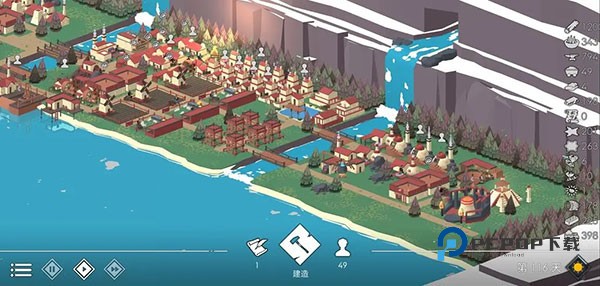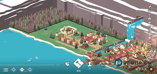 1、一共3个区域,中间出生点走铁矿,上面煤矿,下面黏土,造好桥后才可以解锁相应建筑。