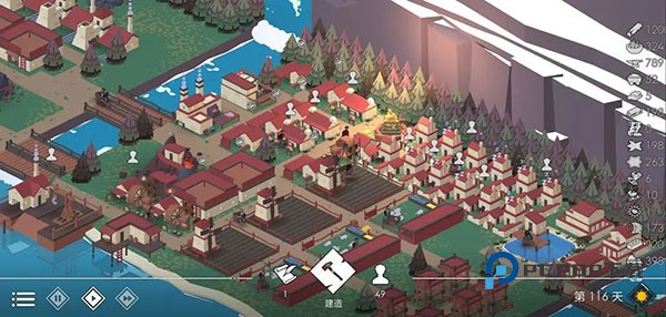 2、开局篝火可以考虑放在最上面树林旁边,前期房子不够的时候秒进林子,基本不会死人,满人口60,建筑之间最好修条路,不然偶尔会卡bug。