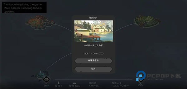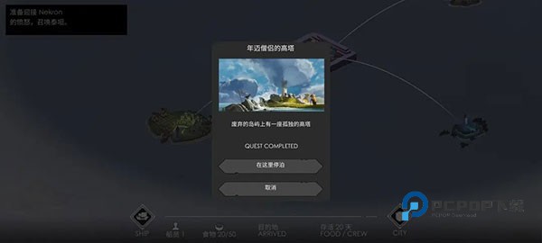 7、船出港后点击世界地图,再点击相近小岛,在此停泊,等个8天左右到达,然后再进世界地图点击之前停泊的小岛。