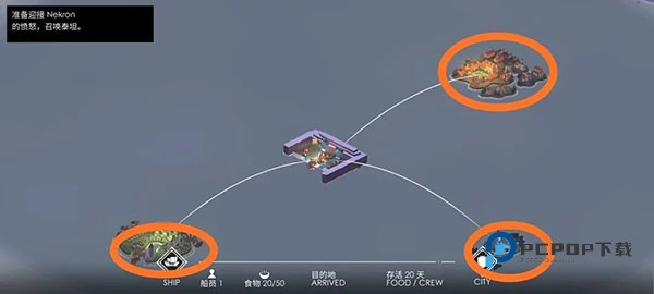 充足的食物可确保村民不会饿死,25个食物即可安全往返,村民不返回原小岛将会饿死在海上,1天消耗1个食物。