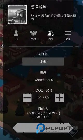 3、建好船坞和船只后,我们就可以在这里选择你想要派出贸易的船,同时派遣船员。一定要记得!带上足够的食物!