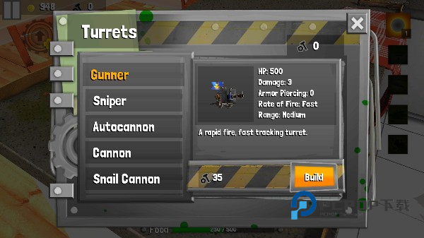 1、炮塔工事:点击进入就可以购买各种炮塔进行防御。