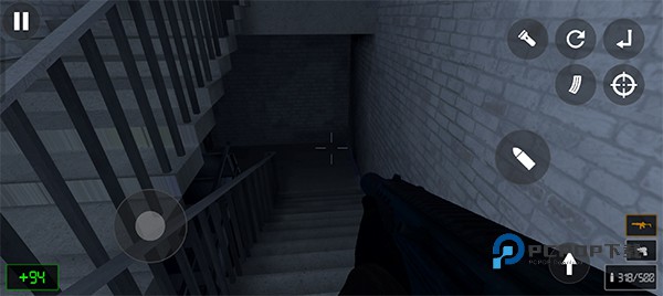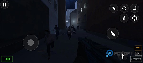 2、操作容易简单,左边控制人物移动方向,右边控制射击、换弹、瞄准等操作。
