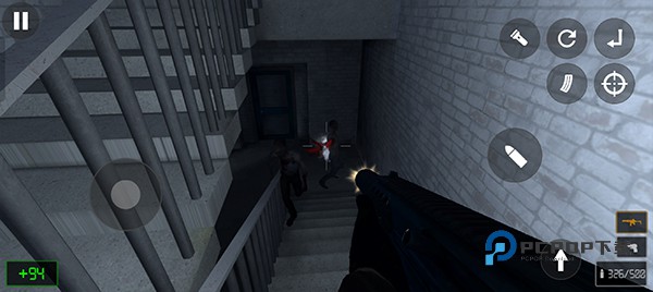 3、游戏的操作非常简单,左边控制人物移动方向,右边控制射击、换弹、瞄准等操作;