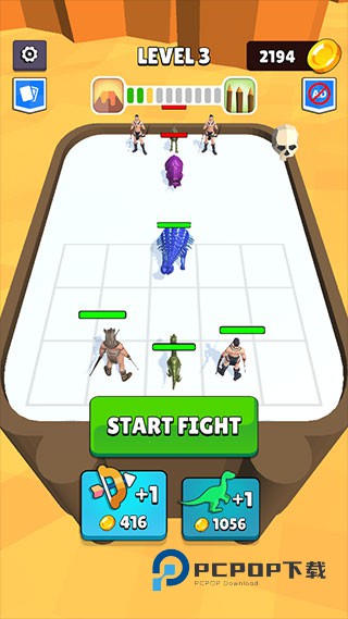 3、游戏下方分别为射手和恐龙,花费金币购买,点击“START FIGHT”开始游戏。