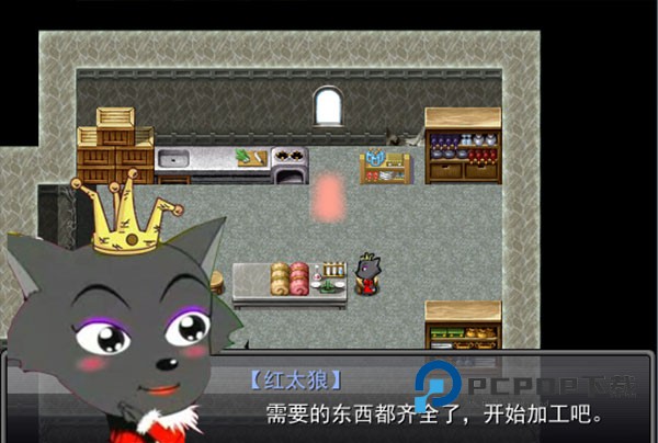 5、灰太狼前往羊村帮忙,操纵红太狼返回卧室,靠近床后点击右下角睡觉。