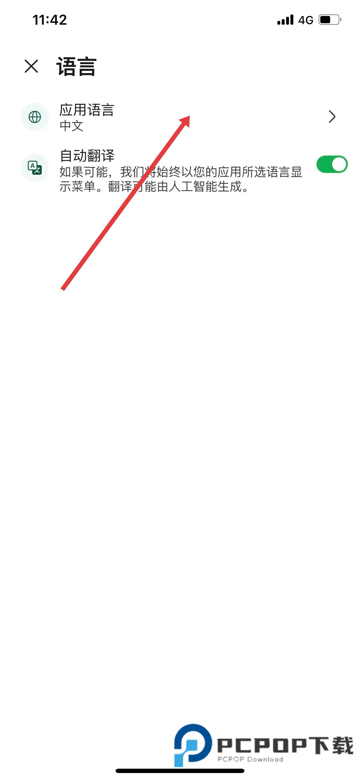 3、点击语言选项后,会看到应用语言,点击进入。