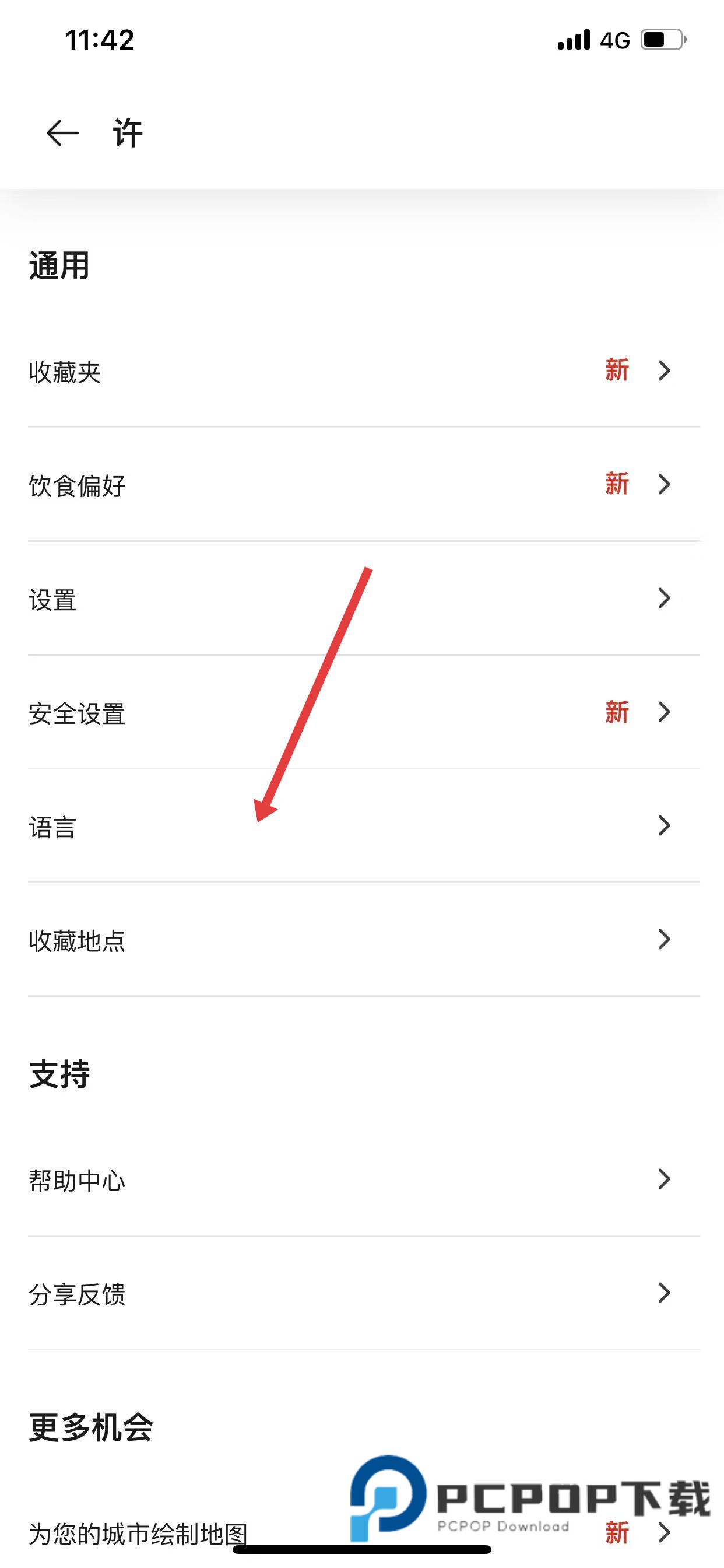2、在通用中找到并点击语言选项。