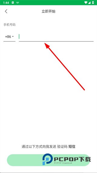 2、在立即开始页面的手机号码输入框中,填写自己的手机号码,以便获取验证信息。
