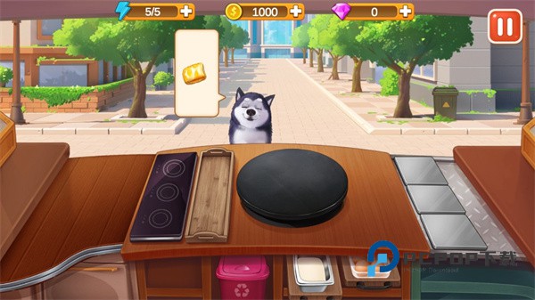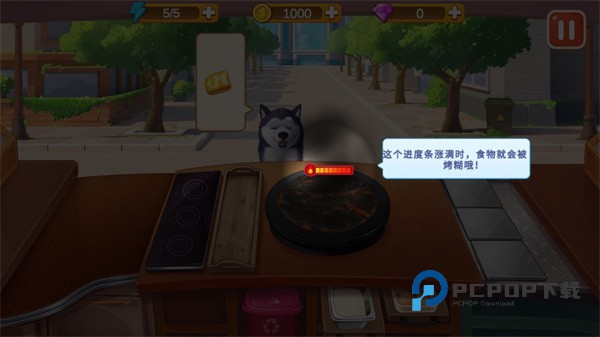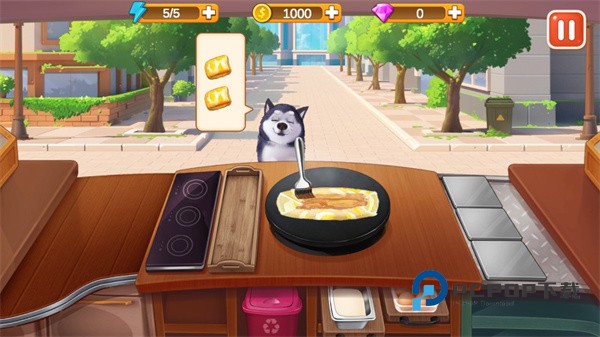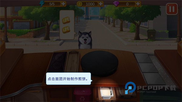 4、图中那只如吉祥物一般的哈士奇,它不仅是小店的第一位“客人”,还是能够听懂人语的神奇狗子,这里我们需要为它做一份煎饼;
